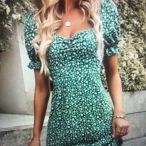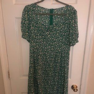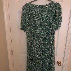 PRE-OWNED. Green Floral Print Puff Sleeve Slit Dress. Midi Dress Womens Size XL.