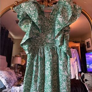Embrace elegance with this stunning green floral ruffle dress. Perfect for any occasion, it offers a flattering fit and eye-catching design.