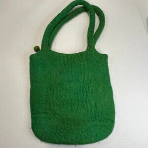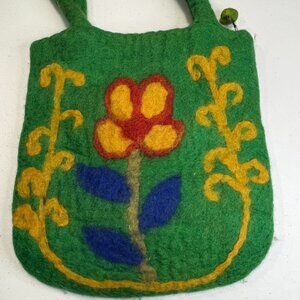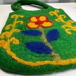 Green Floral Tote Nepal Vintage Boho Cottagecore Yellow Woven Small Vacation