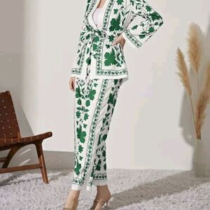 Elegant green floral set perfect for any occasion. Features a stylish design with a comfortable fit.