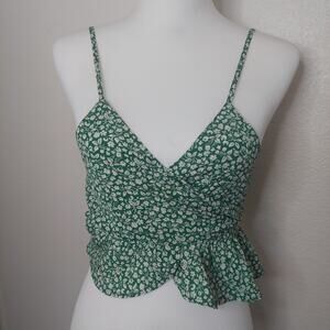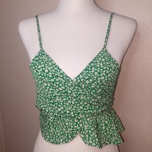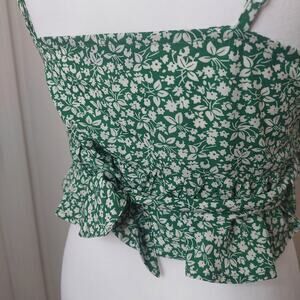 Green Floral Wrap Top - Size Small