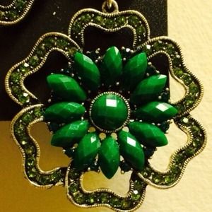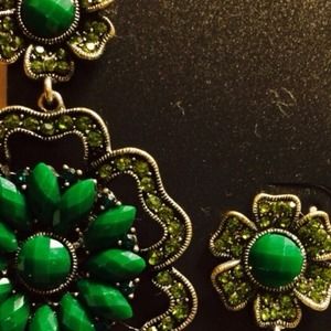 New! Large green statement earrings. Extremely gorgeous and in excellent condition. No rhinestones missing. Slightly heavy. Originally $30. No refunds.