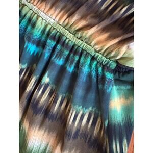 Style Tags: boho chic, summer dress, flutter sleeve, beach style, vacation outfit, tie dye print, green dress, teal tones, casual bohemian, flowy silhouette, lightweight fabric, relaxed fit, short dress, resort wear, feminine style, festival fashion, earthy tones, patterned dress, tropical vibes, boho summer, retro inspired, soft drape, coastal chic, laid back look, weekend style