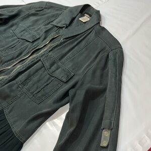 Dark forest green Soft Flowy Tencel great looking zip up collared jacket Flowy peplum ruffle