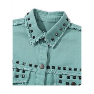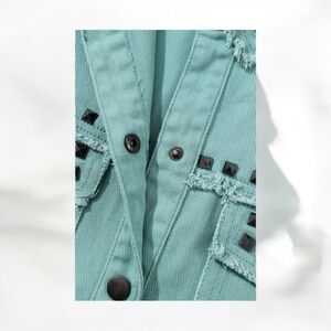 Green Frayed Trim Vintage Rivet Denim Jacket NWT