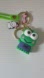Cute green frog keychain with a matching strap. Features a playful design with additional charms.