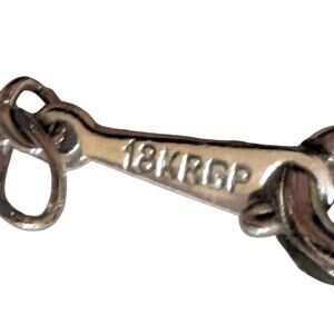 Chain is Silver Tone, 17 inches long with a 2 inch extender its marked 18kRGP (18K gold with 18k gold plating)