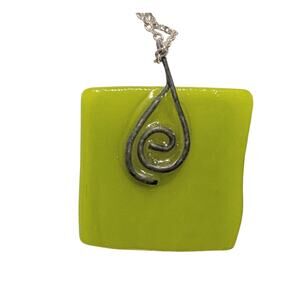 Green Fused Glass Heart Pendant & 18K White Gold-Plated Chain 17 inches