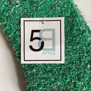 Green Fuzzy Metallic Accent Socks 5B Style One Size Stretchy Christmas