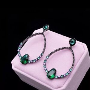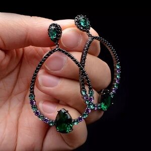 Hoop, water drop, green, purple, women, gem, gift, anniversary, wedding, engagement, black, dangle, diamond, designer, luxury, Halloween, Christmas, xmas, valentines day, gift for her, thanksgiving, heart,