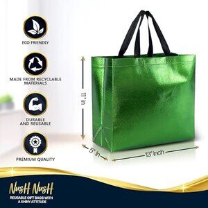 Green Gift Bags Large Size –Set of 12 Shiny Green Reusable Gift Bags With Handle