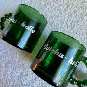 Add a touch of elegance to your matcha routine with this beautiful set of two green glass mugs. Each features a stylish beaded handle and fun, bold phrases: “Matcha Sip Glow Repeat” and “Matcha-holic.” These mugs are perfect for sipping your favorite matcha tea or any other drink you love. Their unique design makes them a great gift for matcha lovers or a charming addition to your own kitchen collection.