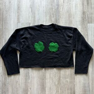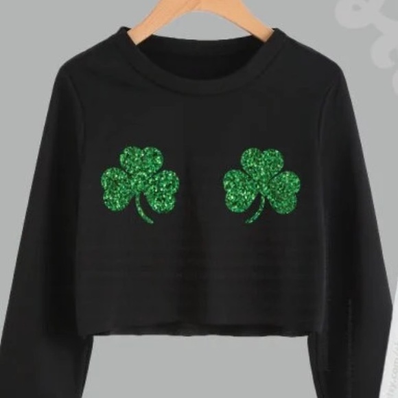 black cropped green glitter clover shamrocks sweatshirt unisex black crop / Shamrock Boobs / Shake Your Shamrocks Shirt / Shamrock Boobies / St Patricks Day / Green Shamrock / Funny St Patricks Day Shirt Women