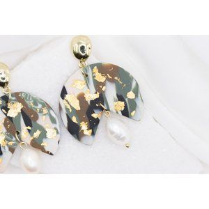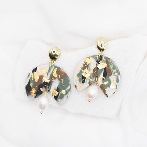 Beautiful, high quality polymer clay earrings featuring brown, green, and gold detailing. Sophisticated earrings to add glam to your look!