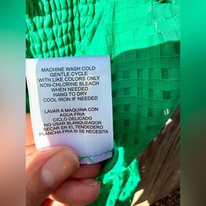 This dress has never been worn and is in flawless condition. A vibrant emerald-green beauty with a playful square grid eyelet overlay, flirty ruffle straps, and a comfy smocked back for the perfect fit. Fully lined with a flattering fit-and-flare silhouette that works for brunch, parties, or any occasion you want to stand out.