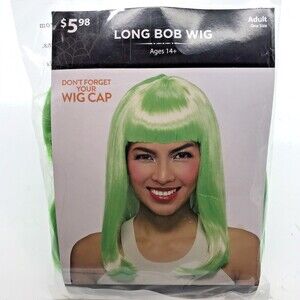 Green Halloween Wig Cosplay Party Costume OSFM Long Bob With Bangs Hair NIP