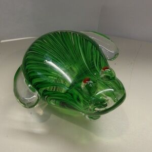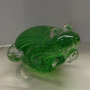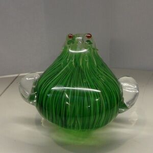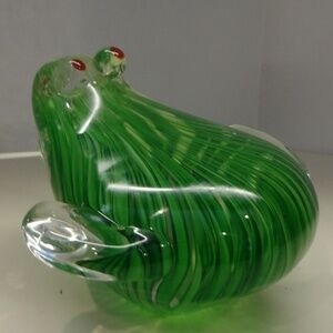 GREEN HAND BLOWN PAPERWEIGHT FROG RED EYES