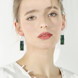 Green Handmade Bohemian Tribal Retro Colorful Square Bar Dangle Drop Earrings