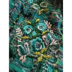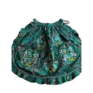 Green Handmade Ruffle Embroidered Floral Waist Apron 31"