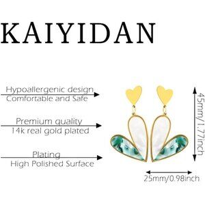 Green Heart Dangle Hoops Statement Vintage Long Summer Earring for Women Jewelry