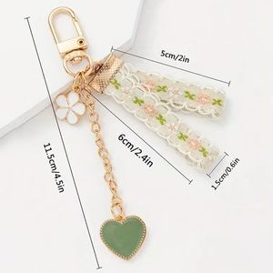 Fun, fresh, and full of charmβthis brand new embroidered keychain features a sweet heart and flower design in vibrant green tones. Perfect for adding a pop of color to your keys, bag, or backpack!