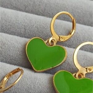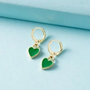 💚 Green Heart Gold Little Hoop Earrings NWT Elegant