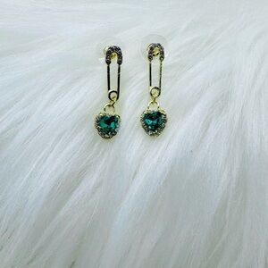 Fashion Jewelry Green Rhinestones Heart Earrings