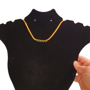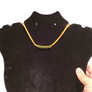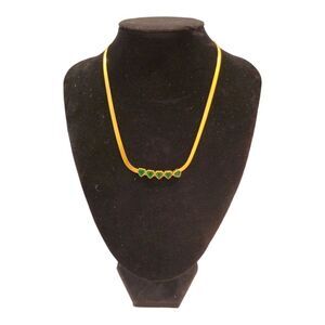 Green Hearts Stainless Steel Crystal Gold-tone Snake Chain Choker Necklace