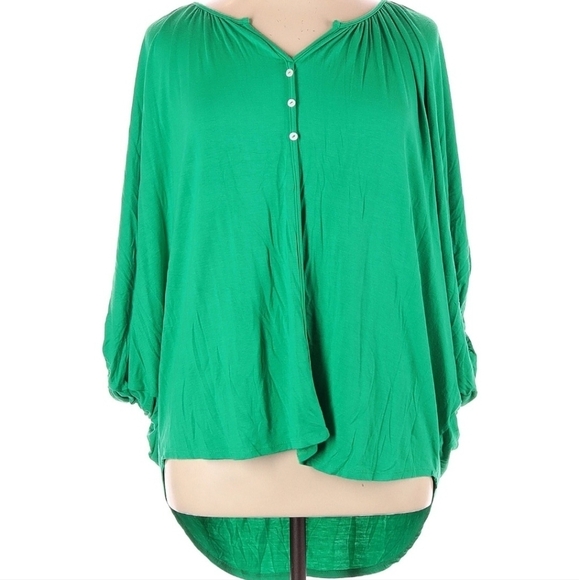 Green 💚 Top. Faux button front detail. longer in the back. Balloon sleeve design.