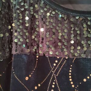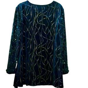 Green Holiday Top Sequins Gold Sparkly Vintage Tunic (Measurements in Pics)