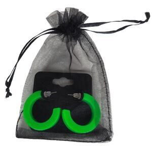 Green Hoop Earrings 1.2" Retro 1980s Neon Chunky Pierced Acrylic Gift Bag Y2K