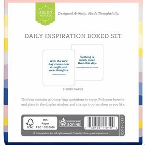 Contains 115 cards, a quotation on each side (230 unique quotations total). Display stand on your desk, at work, or in your home and change out the front facing quotation when you like!