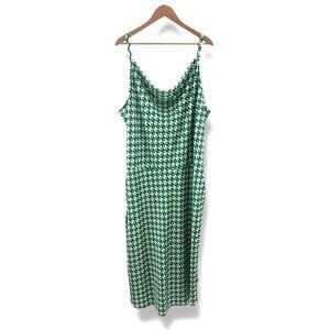 Green Ivory Geometric Print Cowl Neck Satin Midi Dress Size 3X 22 24 Plus Size