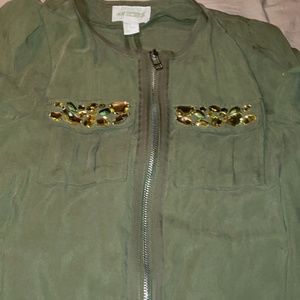 Green jacket with rhinestone pockets