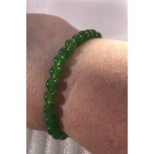 Green jade beaded stretch bracelet will fit most wrists. Beads are 6mm.