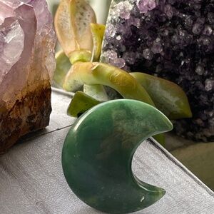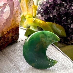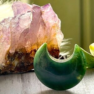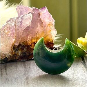 Green Jade Crescent Moon Car Jewelry Air Freshener Clip