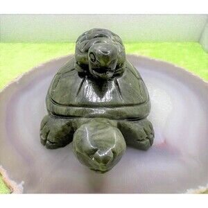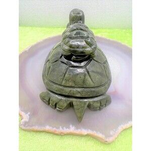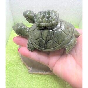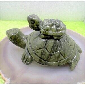 Green Jade Mother and Baby Turtle Carving. See pictures for measurements.