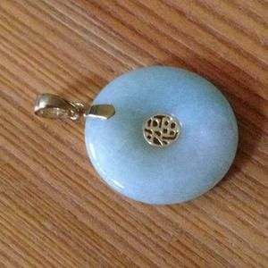 Pretty authentic green jade and gold pendant. Comes with green silk gift pouch.