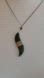 Beautiful green horn-style pendant necklace with a polished jade-look finish and silver tone engraved accent.