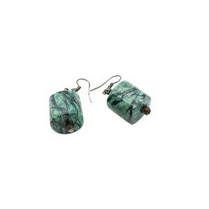 Green Jasper Stone Vintage Cylinder Earrings for Dramatic Dangle Drop