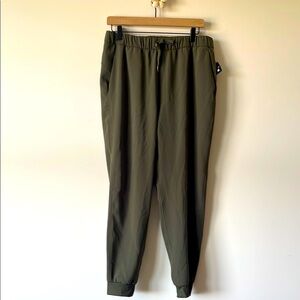 Green Jogger Pants with Elastic Waistband and Tapered Legs