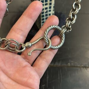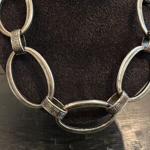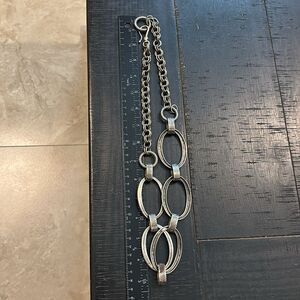 This elegant silver chain necklace adds a touch of sophistication to any outfit. Perfect for any occasion.