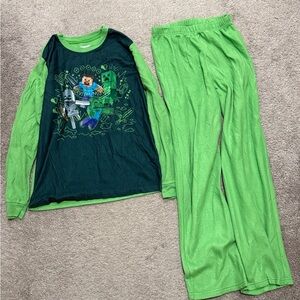 Comfortable green pajama set perfect for kids. Features a fun design on the top. Ideal for cozy nights.
