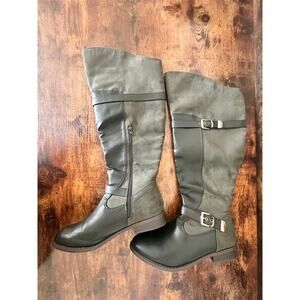 Green Knee-High Equestrian Riding Boots Faux Suede Women's Sz US 10/ UK 8/ EUR 41