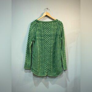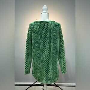 Green L.L. Bean Signature Knit Aran Fisherman Sweater Size L EUC