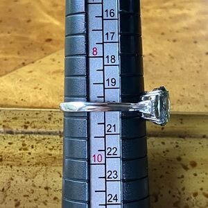 This classy ring features earth mined green labradorite from Mexico. The stone measures 9x7mm. The ring additionally has natural white zircon accents. Zircons are earth mined gemstones. They are not the same as cubic zirconia, which is man-made/lab created. The total gemstone carat weight on the ring is 1.39. The ring is set in solid .925 sterling silver with a rhodium plate to prevent tarnishing. The ring in the photos is the actual one you will receive, so please see photos for quality and measurements. Size 9.