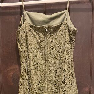 Elegant green lace dress with spaghetti straps. Perfect for any occasion.