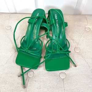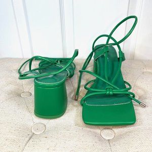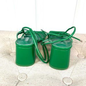 Green Lace Up Block Mid Heel Square Front Sandals 8 Wide Fit