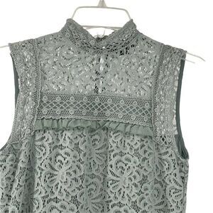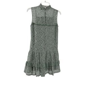 Green Lace Dress High Neck Bohemian Victorian Mini Sleeveless Jodi Kristopher XS
