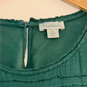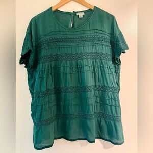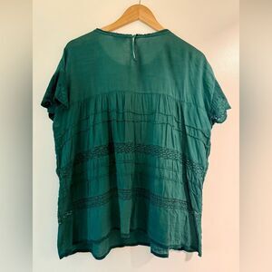 Elegant green top with delicate lace trim. Perfect for any occasion.